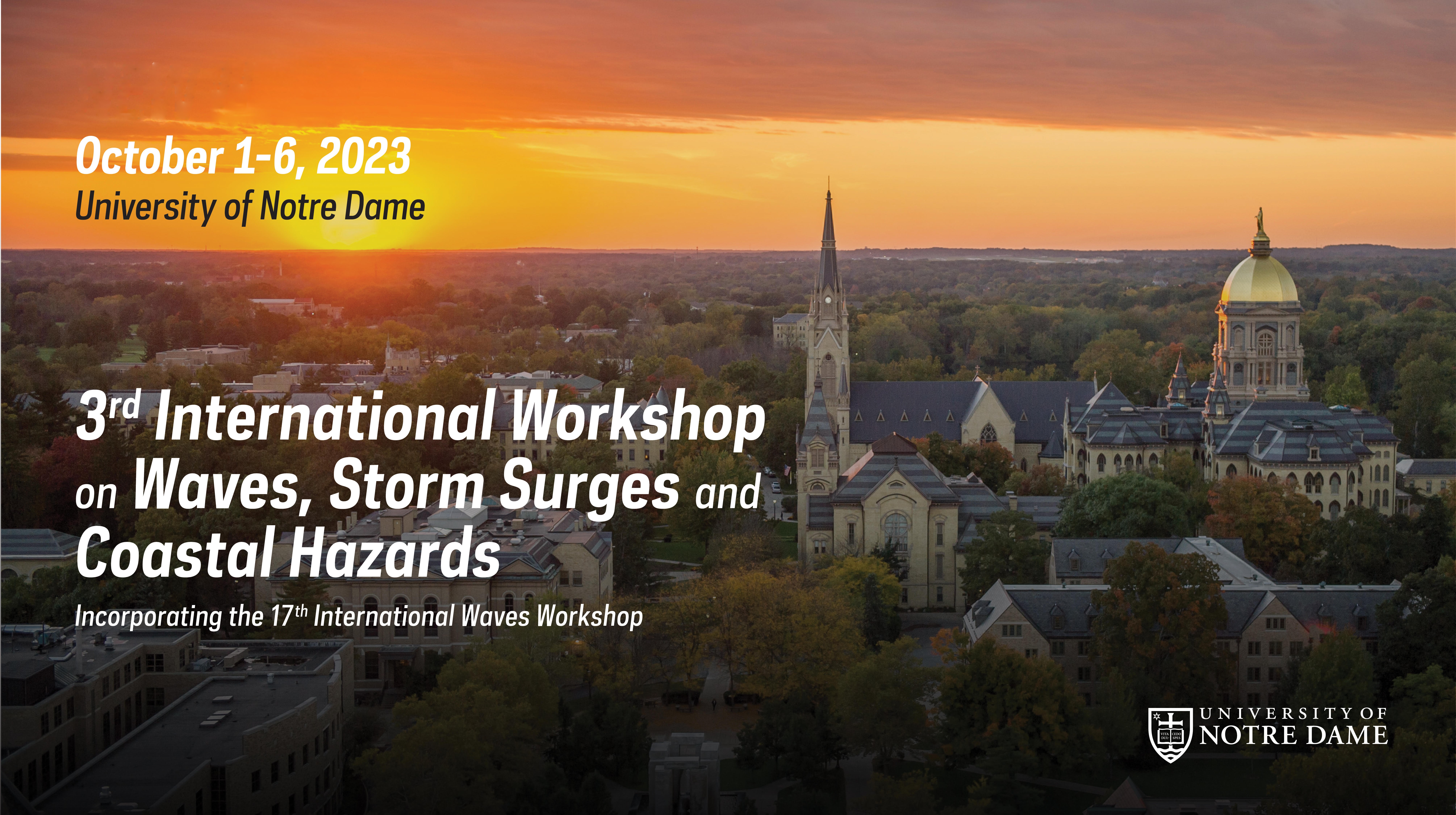 3rd Workshop on Waves, Storm Surges and Coastal Hazards Incorporating the 17th International Wave Workshop October 1-6, 2023 University of Notre Dame South Bend, IN, USA